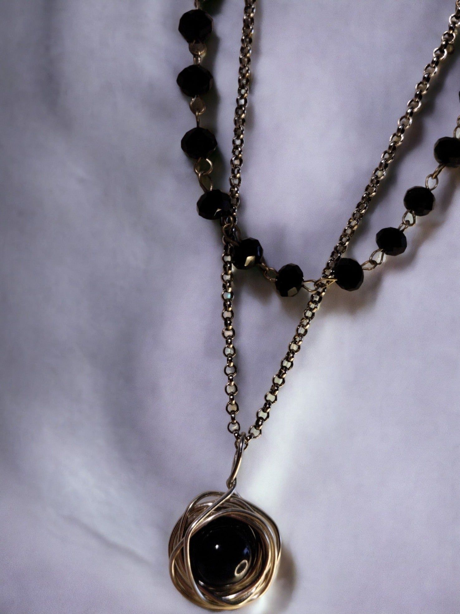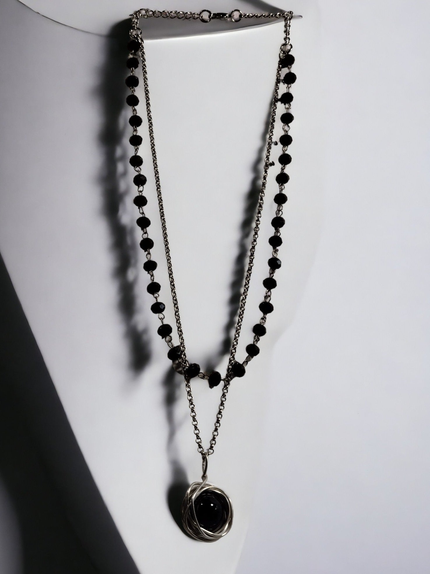 Διπλό Κολιέ με Μαύρες Χάντρες