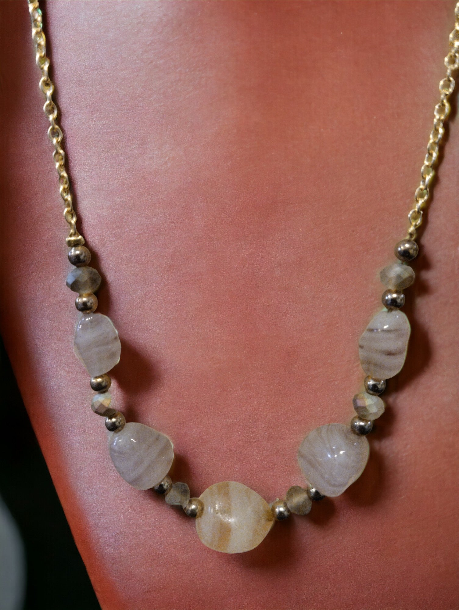 Κολιέ με Πολύχρωμες Γυάλινες Χάντρες και Χρυσή Αλυσίδα