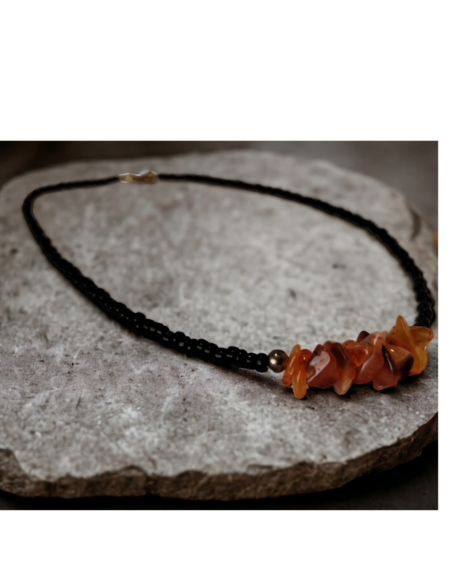 Κολιέ με Ημιπολύτιμους Λίθους και Μαύρες Χάντρες