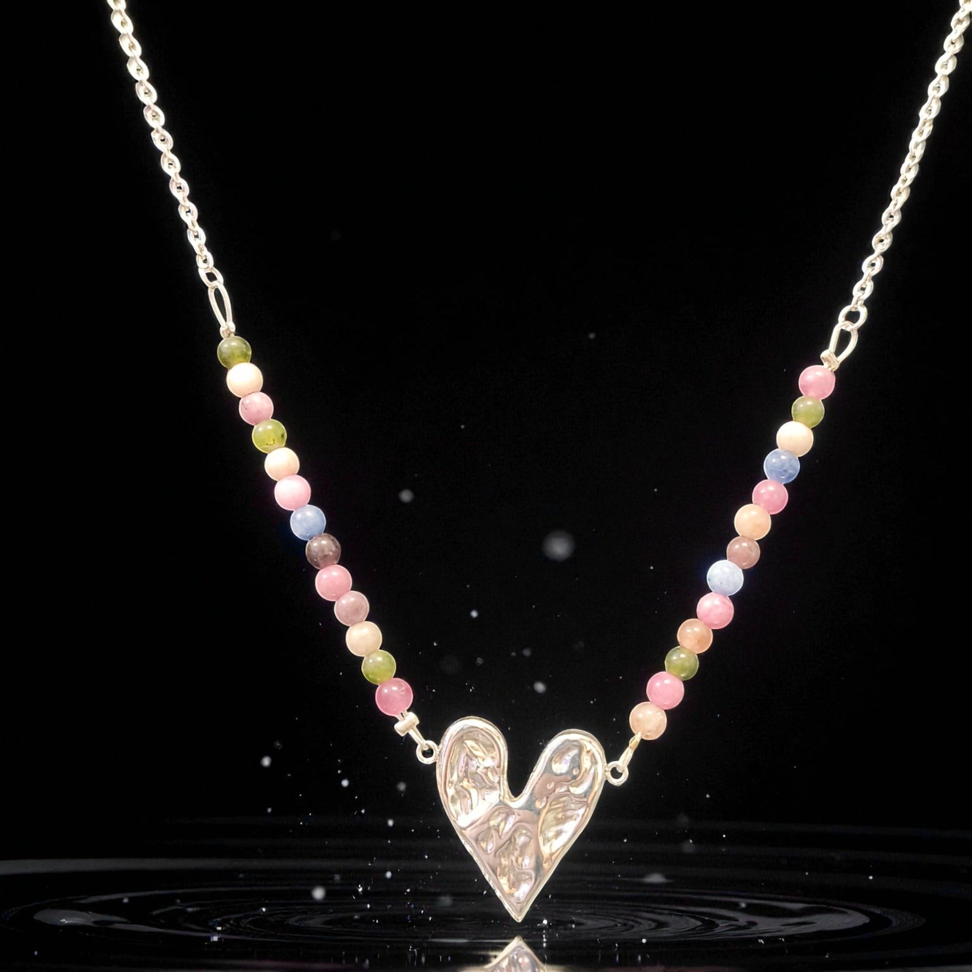 Κολιέ με Καρδιά και Πολύχρωμες Χάντρες