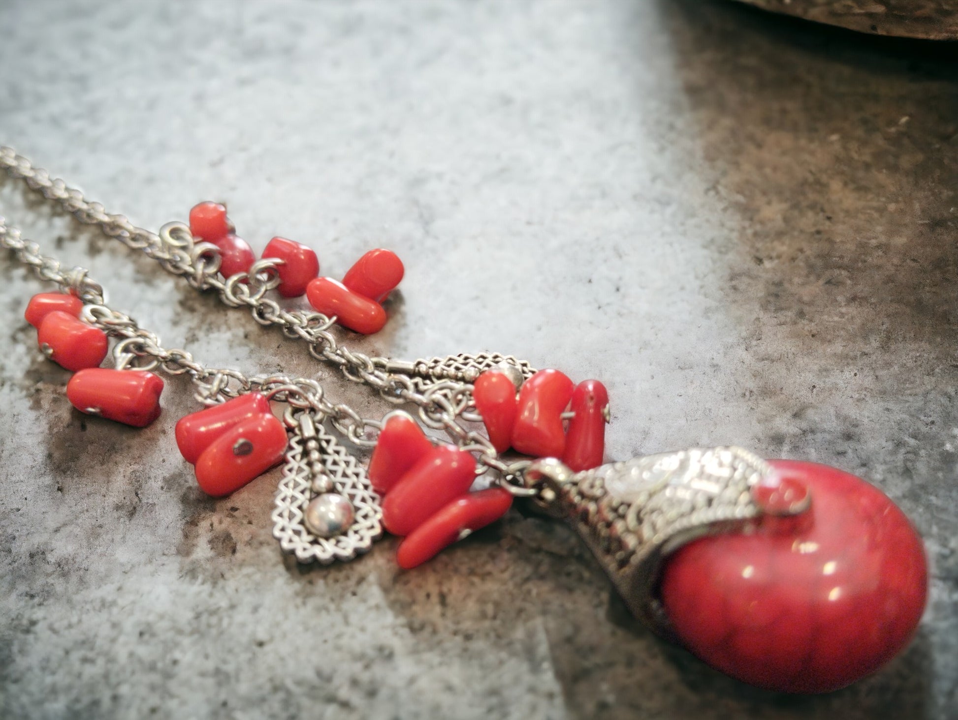 Το κοράλι συναντά το boho στυλ σε αυτό το μοναδικό κολιέ που αποπνέει θαλασσινή ενέργεια.