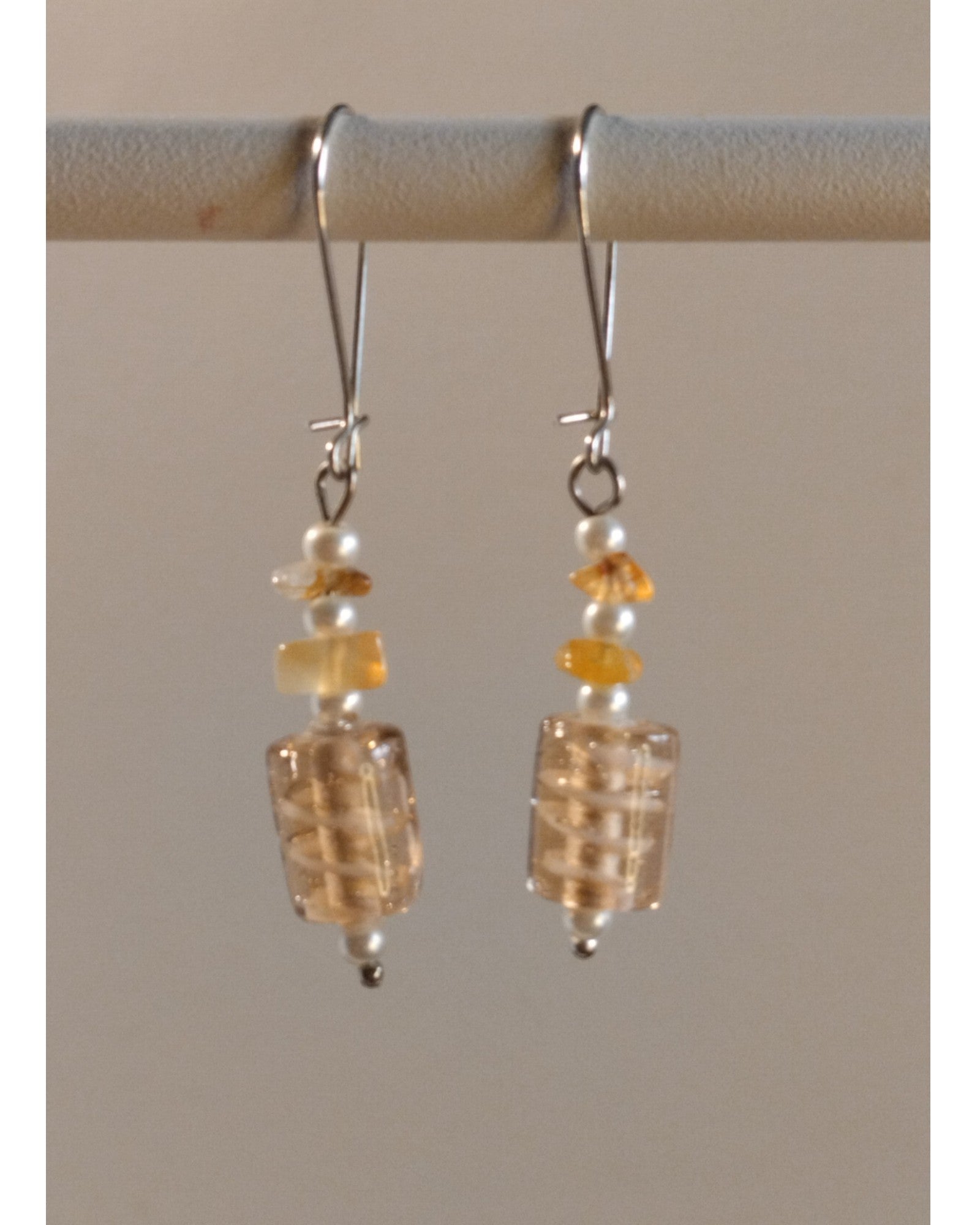 Αυτά τα όμορφα σκουλαρίκια θα συμπληρώσουν τέλεια κάθε σας εμφάνιση. Η γυάλινη χάντρα δημιουργεί έναν διακριτικό αλλά εντυπωσιακό λαμπερό εφέ.