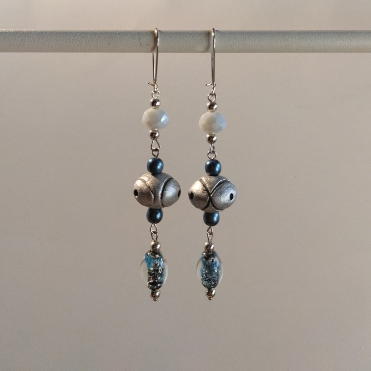 Μακριά Σκουλαρίκια με Ασημί και Μπλε Χάντρες