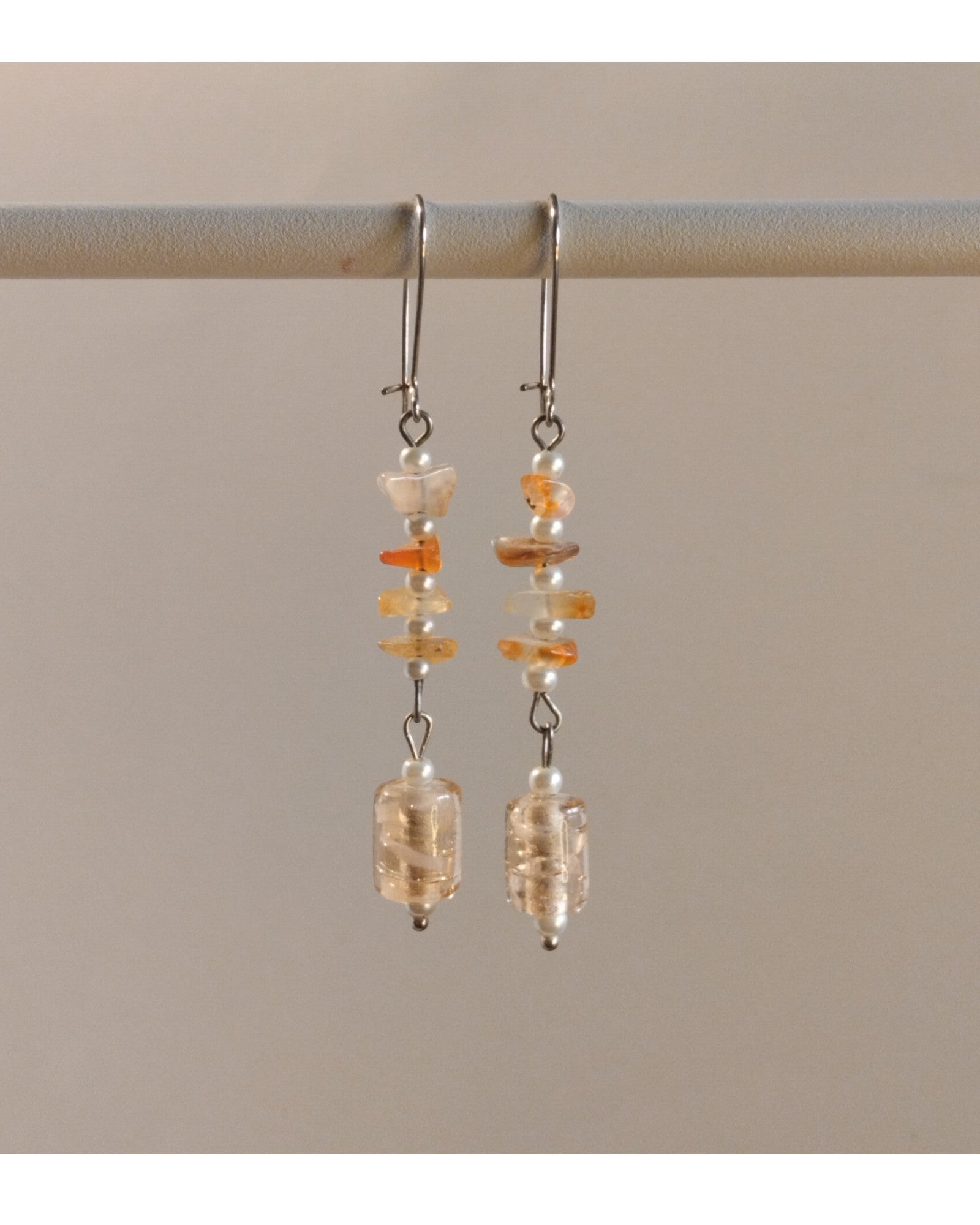 Αυτά τα μοναδικά σκουλαρίκια θα προσθέσουν μια πινελιά κομψότητας σε κάθε σας εμφάνιση. Η γυάλινη χάντρα αντανακλά το φως δημιουργώντας έναν υπέροχο λαμπερό εφέ που θα τραβήξει τα βλέμματα.