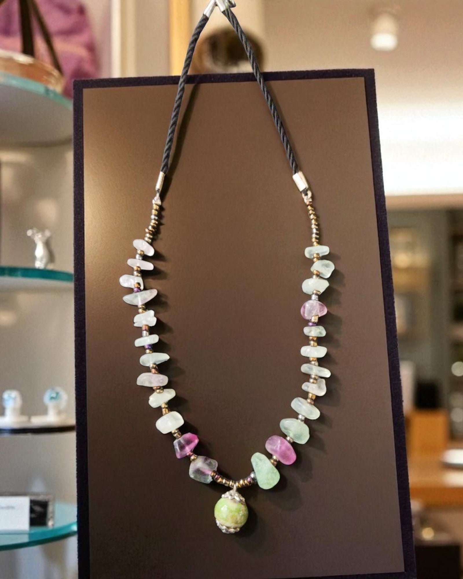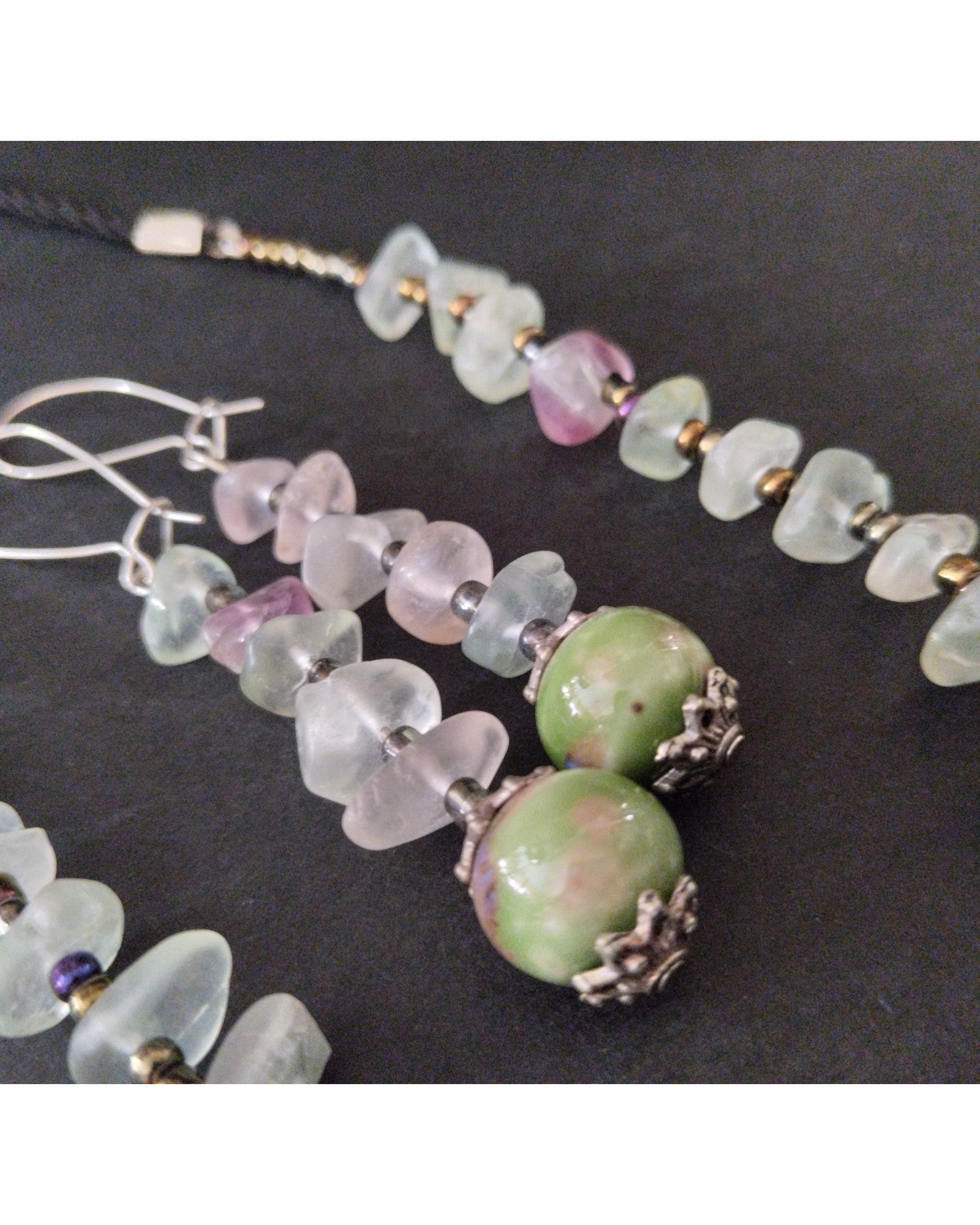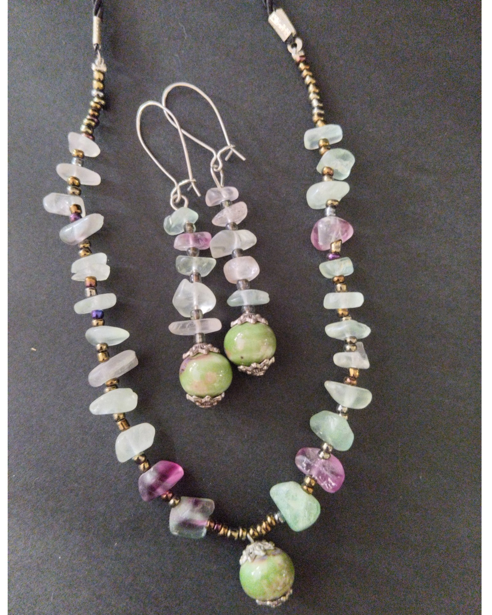 Σετ Σκουλαρίκια και Κολιέ με Πράσινες και Ροζ Πέτρες