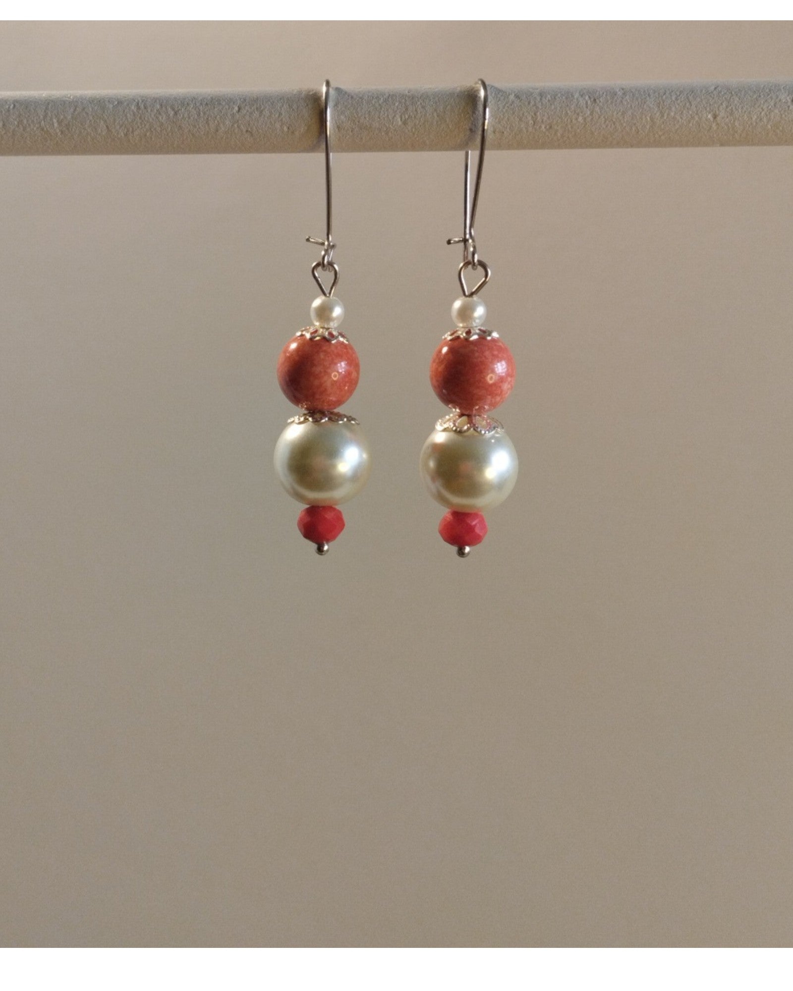 Κομψά σκουλαρίκια με συνδυασμό μαργαριταριών και κόκκινων πετρών που δημιουργούν ένα εκλεπτυσμένο και κλασικό σχέδιο. Οι ασημένιες λεπτομέρειες προσθέτουν λάμψη και φινέτσα. Ιδανικά για ξεχωριστές στιγμές με κομψότητα.