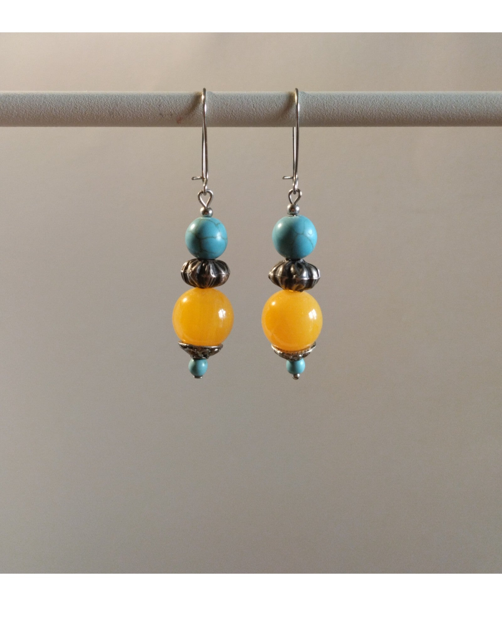 Σκουλαρίκια με Τυρκουάζ και Κίτρινες Χάντρες
